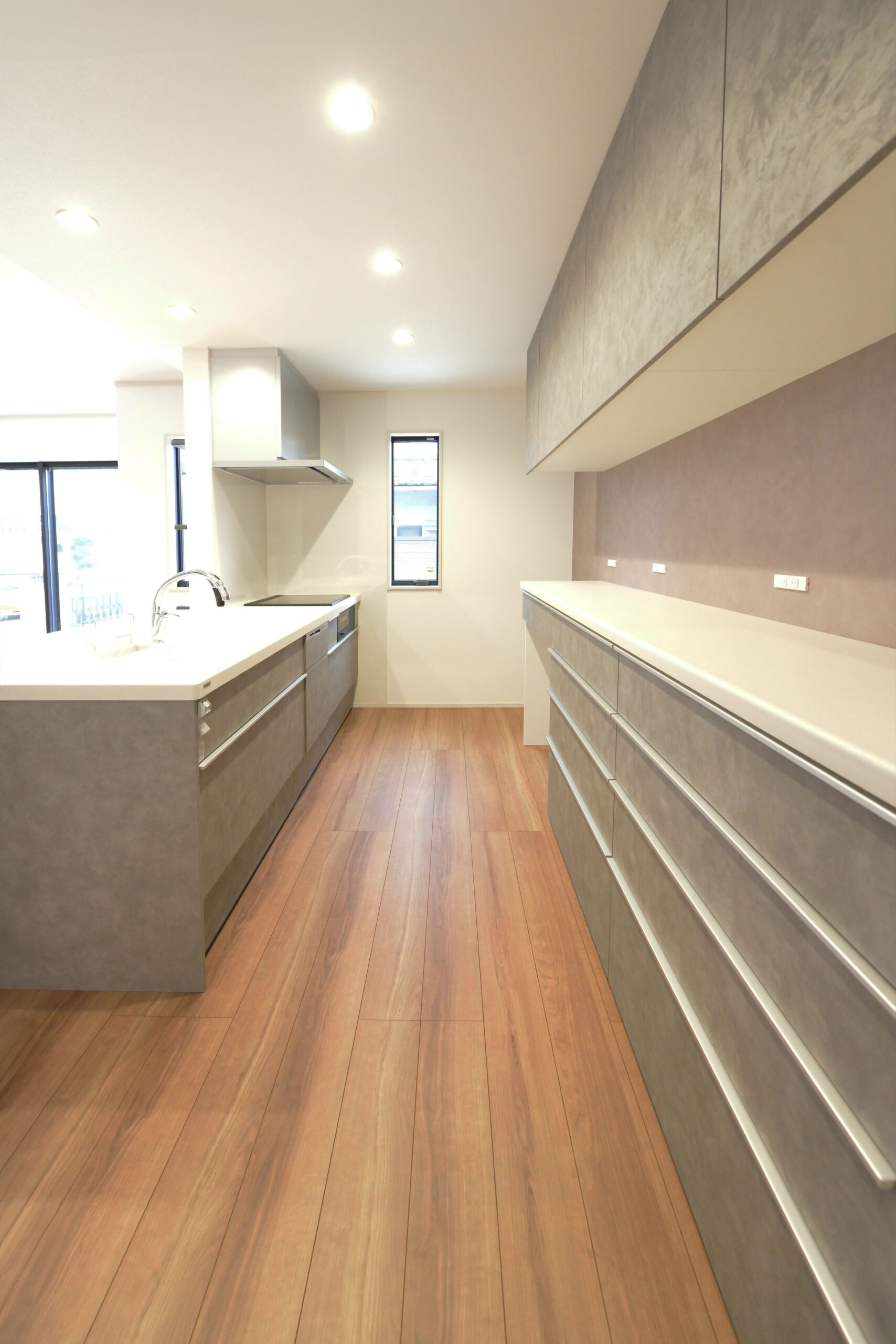 キッチンは対面オープンキッチンとなっており、お食事の配膳や、フリー空間となるためご家族のコミュニケーションがとりやすい作りとなっております。